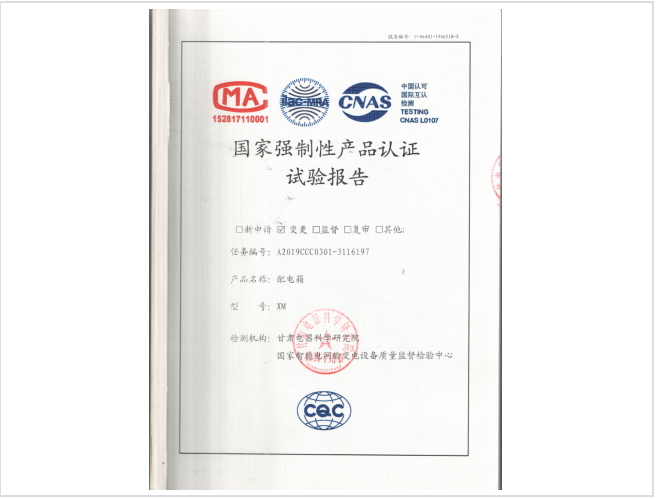- 关于我们 - 资质荣誉 - 配电箱资质